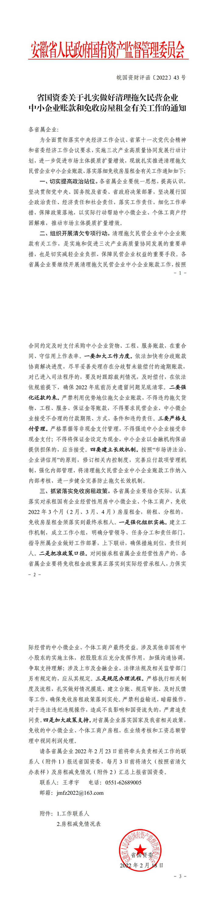 省國資委關(guān)于扎實(shí)做好清理拖欠民營(yíng)企業(yè)中小企業(yè)賬款和免收房屋租金有關(guān)工作的通知