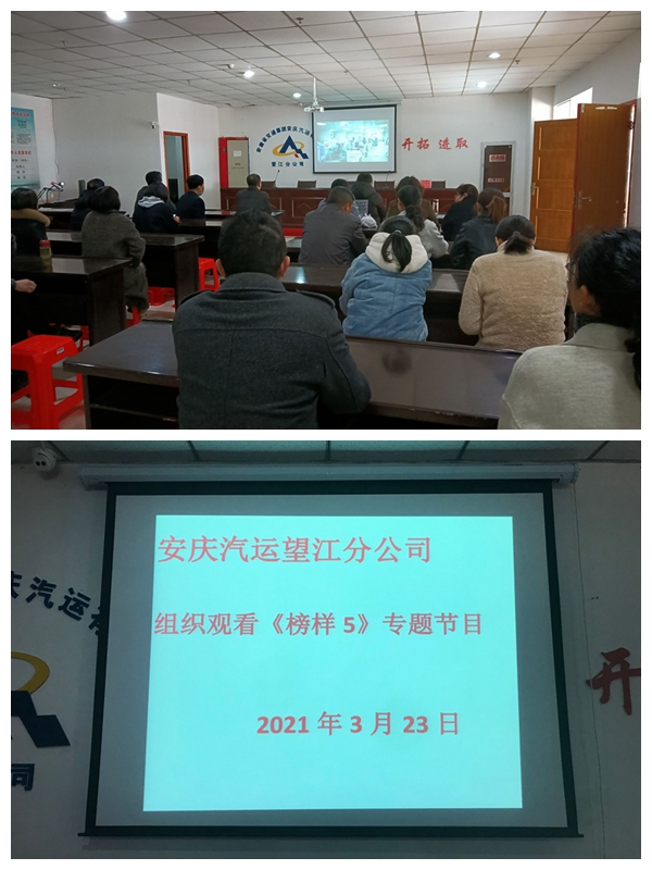 3月23日上午,望江分公司組織全體黨員和廣大職工在會(huì )議室集中觀(guān)看學(xué)習《榜樣5》專(zhuān)題節目。